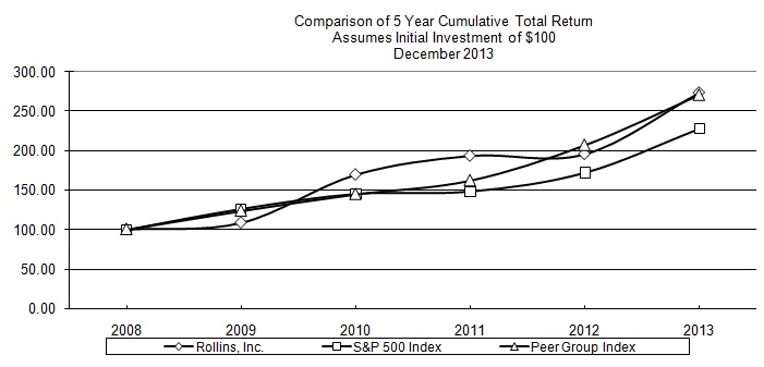 The aggregate market value of Rollins, Inc. Common Stock held by non-affiliates on June 30, 2013 was $1,646,439,937 based on the reported last sale price of common stock on June 30, 2013, which is the last business day of the registrant’s most recently completed second fiscal quarter.